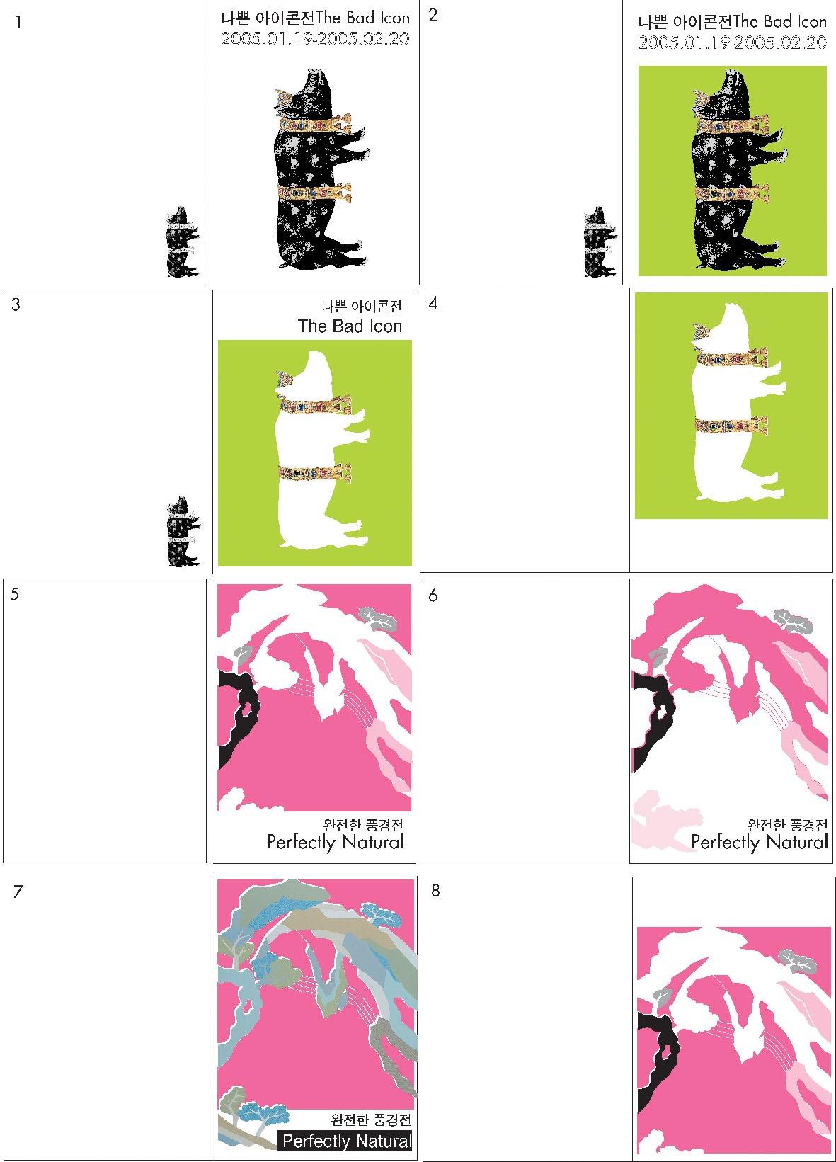 컨셉이 뭔지.. (?) 한글이나 영문타이틀 둘중 하나정도는 두께감을 주심이..(서체나 레이아웃이 알차보이지가않고 시선이 분산되는느낌..) 지금같은 느낌잘살려 보완하면 도록 표지로는 좋은작품되실듯.. ^^